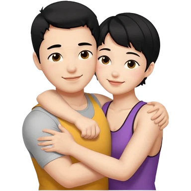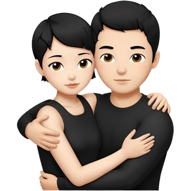 buff Asian Man black hair hugging girl with black pixie cut emoji