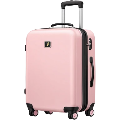 Pastel pink rolling carry-on suitcase next to white sneakers, minimal background emoji