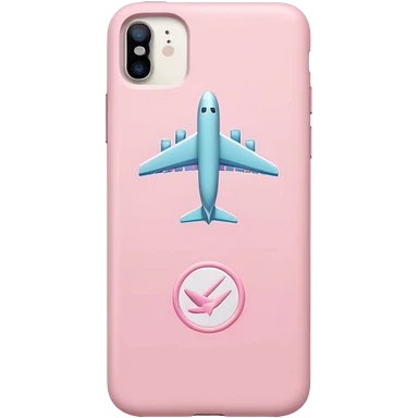 White iPhone with pastel pink case and airplane mode symbol, minimal aesthetic emoji