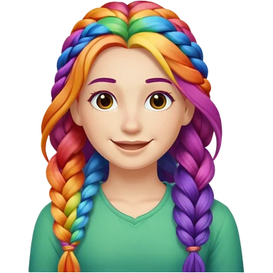 Woman with braided rainbow hair, happy — long braids, pink shirt emoji