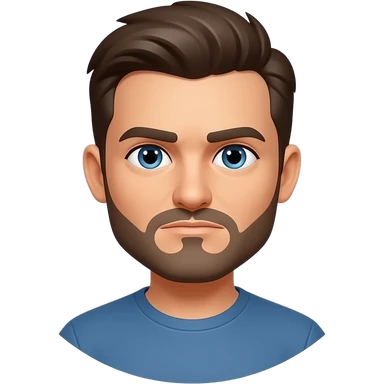 Hombre 63 años cara muy delgada pelo muy corto marrón canoso gafas de sol cristales azules azules que no se vean los ojos con montura negra y barba canosa muy muy corta emoji