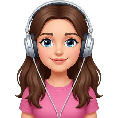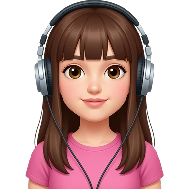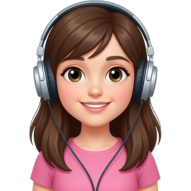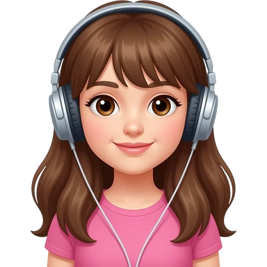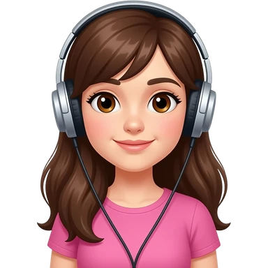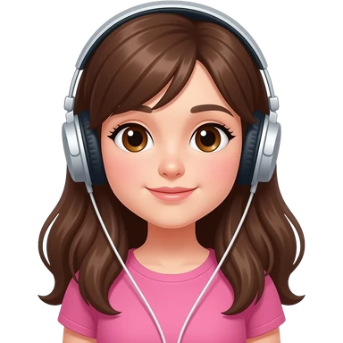 Tinédzer arca legyen a lánynak rózsaszín felső legyen rajta és zenét hallgasson és hosszú barna haja legyen és barna szeme és ne legyen frufruja emoji