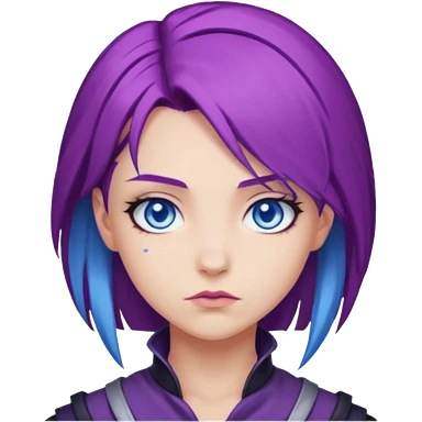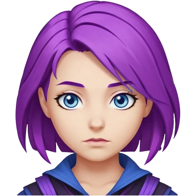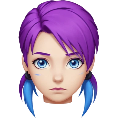 Vi from Arcane (Netflix Animation) Face Shape: Strong, angular with high cheekbones and a defined jawline. Slightly pointed chin. Skin Tone: Fair with a pinkish undertone. Eyes: Large, almond-shaped, slightly downward-tilted, deep magenta/pink. Eyebrows: Thick, sharp, slightly arched, adding to her bold expression. Nose: Small to medium with a slightly upturned tip. Lips: Full but not overly plump, often pursed or smirking. Hair: Vivid pink/magenta, short and asymmetrical—left side shaved, right side with long, voluminous bangs partially covering her eye. The back is short and messy. Other Features: Light freckles, a scar on her right eyebrow. Expression: Intense and confident, often smirking or glaring. Accessories: Small silver hoop earring in her left ear. Tattoo: Roman numeral "VI" on her left cheekbone, below her eye. emoji