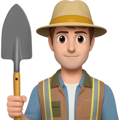 An icon showing an archaeologist’s tools: a trowel, brush, and a partially uncovered ancient artifact like a vase or tablet. The design includes a sandy excavation site with ruins in the background, symbolizing the discovery of past civilizations. Transparent background emoji