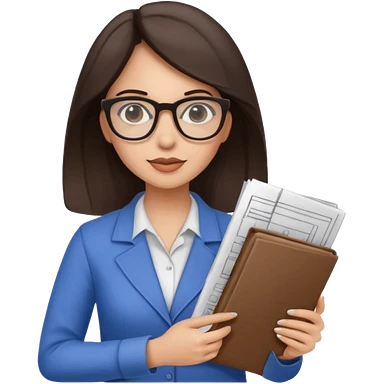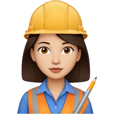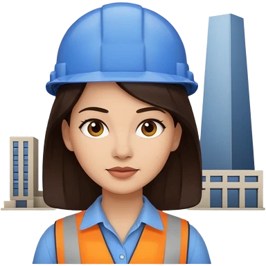 architect woman light skinned dark brown hair in WHITE POLO touch of light green, long hair but then wearing proper architeture attire with plates on the backgrounf emoji