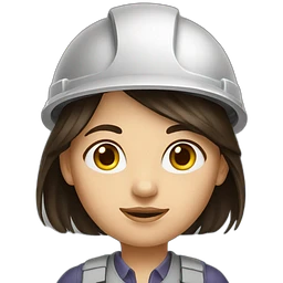 Architect student woman with blue eyes, brown hair. Academic aesthetic emoji