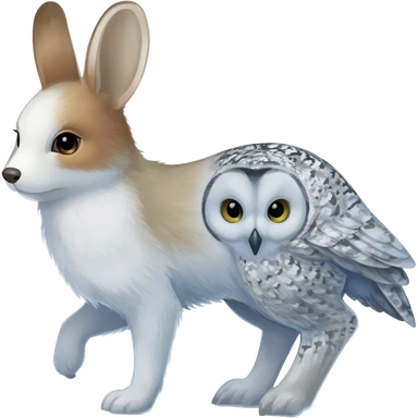 Arctic-Fox-Snow-Leopard-Snowshoe-Hare-Snowy-Owl-hybrid, full body emoji | AI Emoji Generator