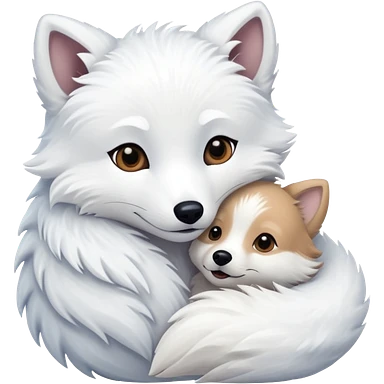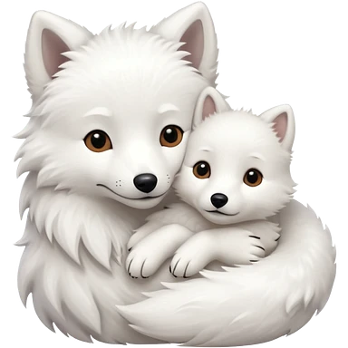 Arctic fox and white dog hugging emoji