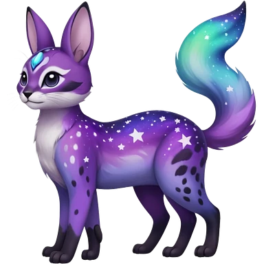 Colorful black-violet-indigo-purple-gradients nebulae nebula starry galactical shiny white-stars-spotted glorious iridescent divine exotic cute cool beautiful realistic Meloetta-caracal-civet-sergal-oncilla-animal-Fakémon-hybrid-fursona (full body) emoji