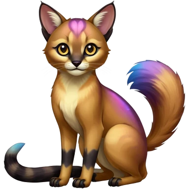 Colorful iridescent Asian painted anime-styled big-eyed shiny glorious divine marked exotic cool beautiful realistic caracal-civet-oncilla-animal-Fakémon-hybrid-fursona (full body) emoji