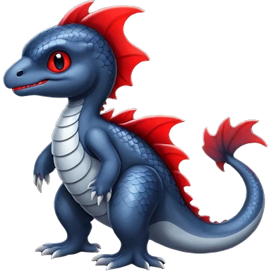 midnight blue-gray-black, with red markings, white belly, scaley Bastet-Noibat-Gatomon-Digimon-Fakémon-Pokémon-creature (full body) emoji