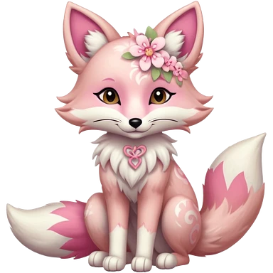 Anthropomorphic digitigrade Pastel beige and pastel Sakura-pink fox furry-Falvie-Fionbri-fursona with floral swirly markings and white spot markings emoji