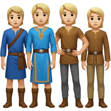 Cartagineses: un grupo de hombres jóvenes, pelo largo rubio y castaño, ropa buena, cara de niños de alrededor de unos 20/25 años. cuerpo entero emoji