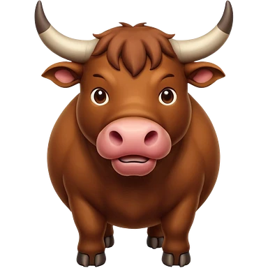 An adorable full-body 3d brown bull with large and exaggerated features in the shape of a ball. Make the background white emoji