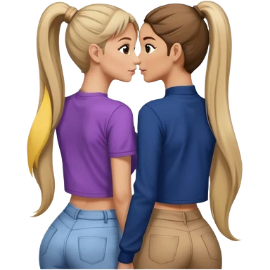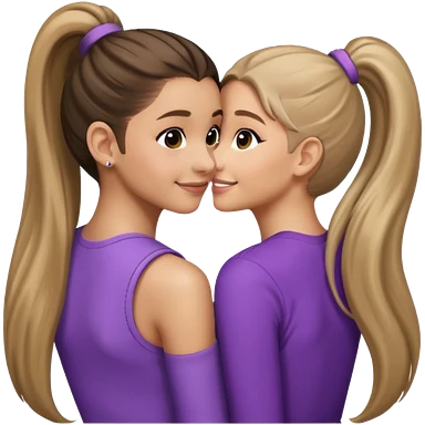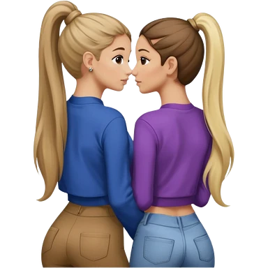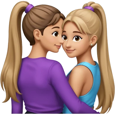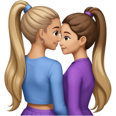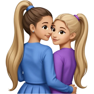 Ariana grande back view with long hair in a ponytail leaning on another girl with long hair in a ponytail emoji