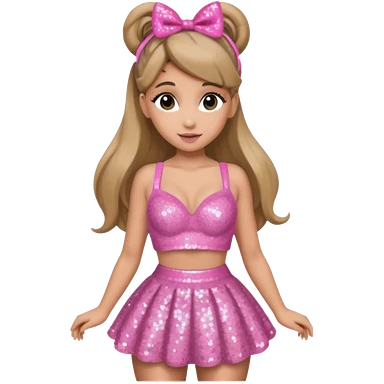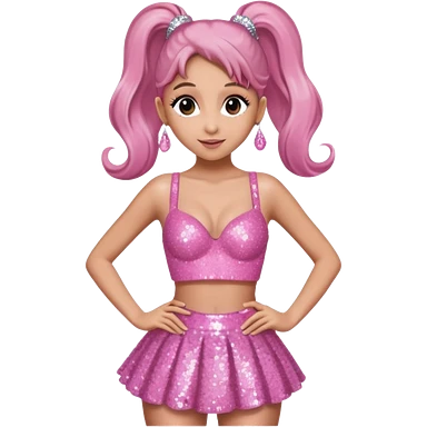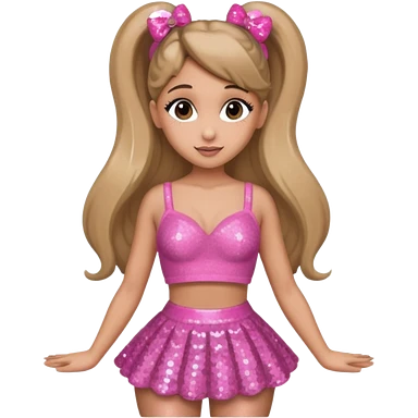 Ariana Grande with pink sequin bra, pink sequin skirt emoji
