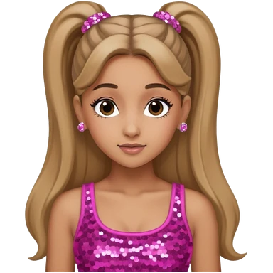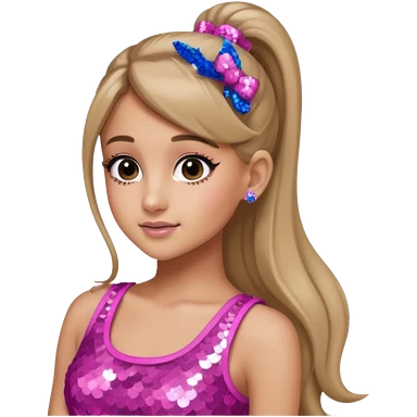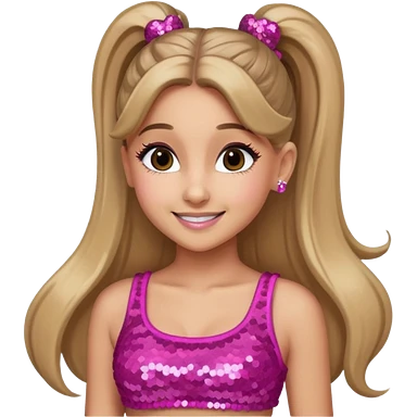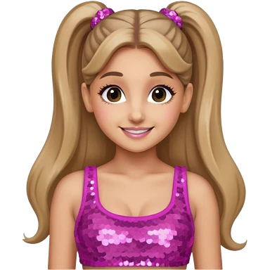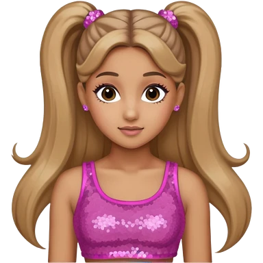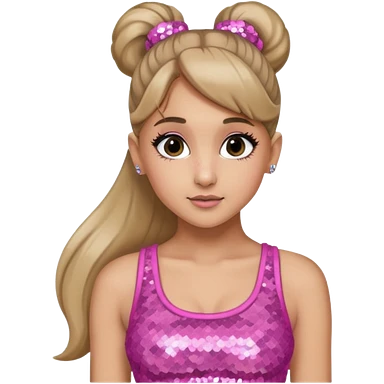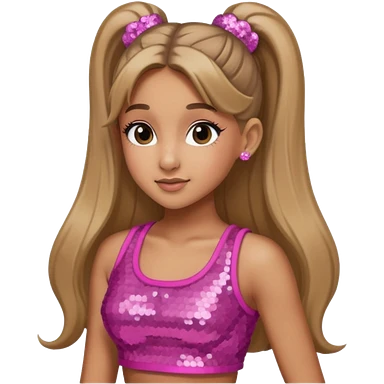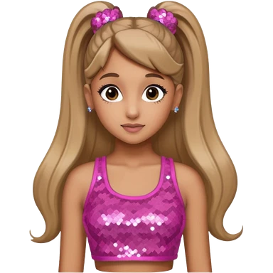 Ariana Grande with long dark blonde ponytail hair, pink sequin crop top emoji