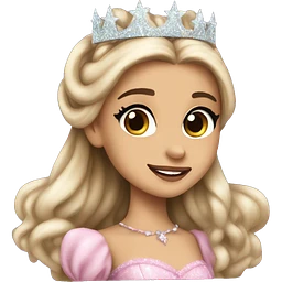 Ariana Grande as Galinda from Wicked. blond hair, a crown and big pink dress emoji