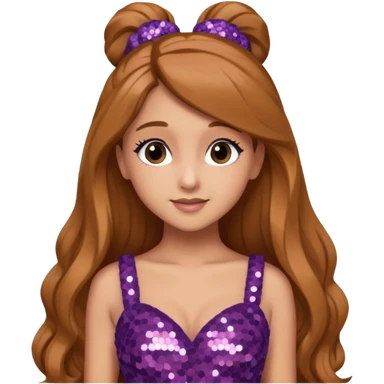 Ariana Grande with long golden brown hair, mauve sequin dress emoji