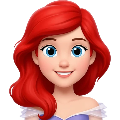 Ariel from Disney's The Little Mermaid, smiling, with flowing red hair, purple seashell top, and green mermaid tail, apple-style emoji art emoji