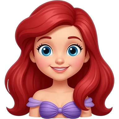 Ariel from Disney's The Little Mermaid, smiling, with flowing red hair, purple seashell top, and green mermaid tail, apple-style emoji art emoji
