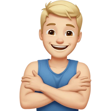 Arm crossed neck laughing guy emoji | AI Emoji Generator