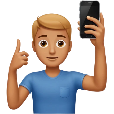 a man holding a phone, taking a selfie in front of a mirror emoji