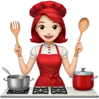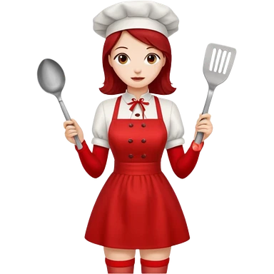 pinup girl in dress and stocking while cooking emoji
