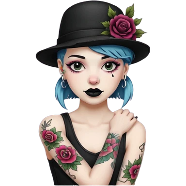 Arm tattoo ,beautiful, woman, doll, black hair with black cat emoji