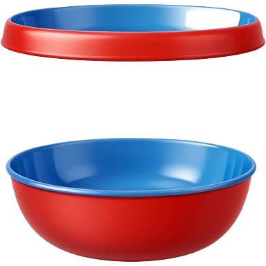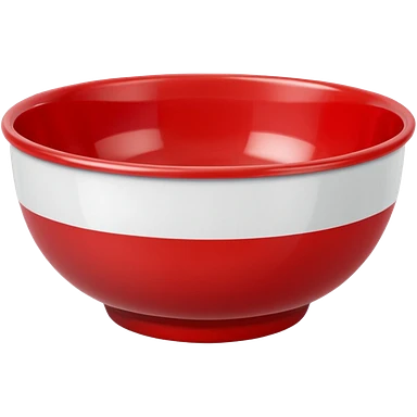 A bright red plastic household bowl. Smooth glossy surface, soft studio lighting, subtle shadow underneath. Product-style photography, crisp focus, minimalistic composition. emoji