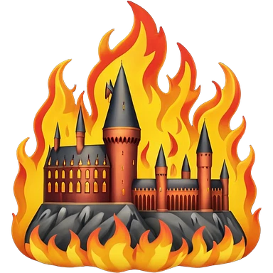 Hogwarts covered in flames and fire emoji