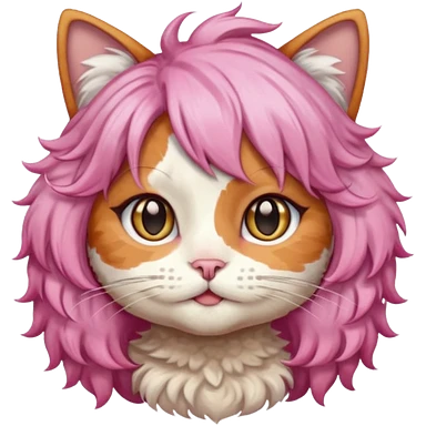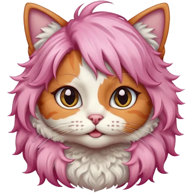 calico cat wear long pink hair wig emoji