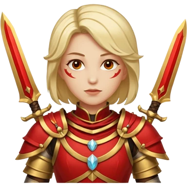 Ember Baroness + gold-red cuirass + twin blades. negative : characters emoji