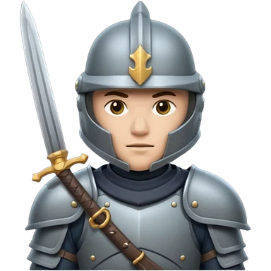 Swordsman, Serious Face, Brown Hair & Eyes, White T-Shirt underneath Red Jacket, Black Scarf, Armoured. emoji