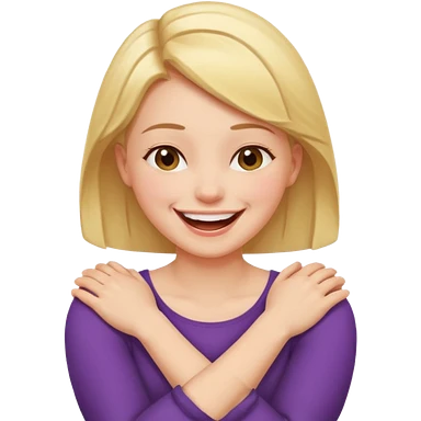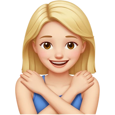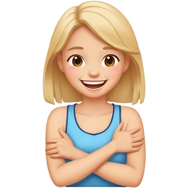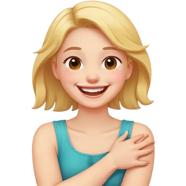Arms crossed holding neck laughing girl emoji | AI Emoji Generator
