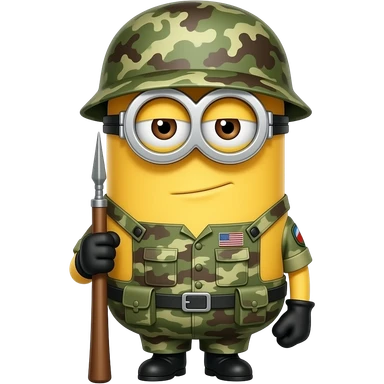 Minion in army uniform and rifle at attention on guard duty text on helmet aOT emoji
