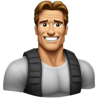Arnold Schwarzenegger as the Terminator, holding a raised gun, realistic emoji style emoji