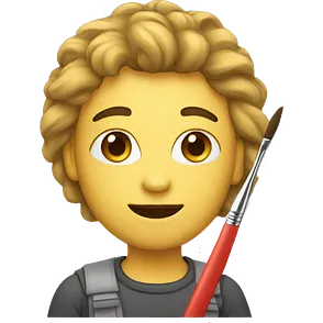 professional painter emoji, holding a paintbrush and palette, wearing a beret, cheerful expression emoji