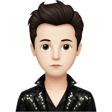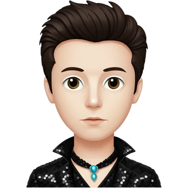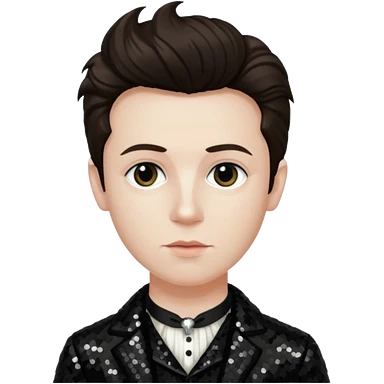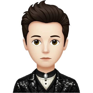 Arthur Rimbaud with dark brown hair, black sequin outfit emoji