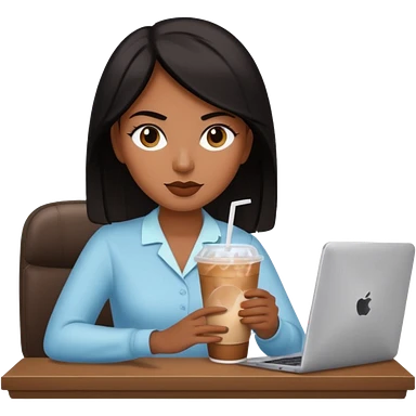 컴퓨터 작업 중 + 아이스 아메리카노(테이크아웃 잔)링거 + 다크서클 + 검은머리 여성 emoji