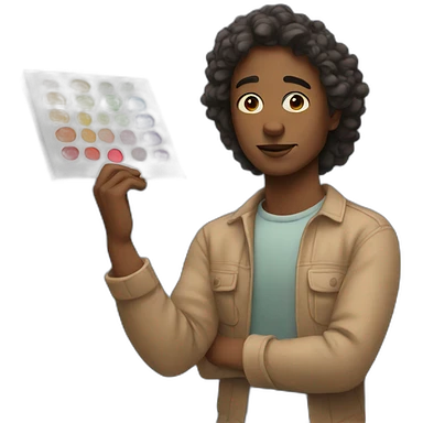 an artist's palette with oil paint colors and a brush that mixes emoji
