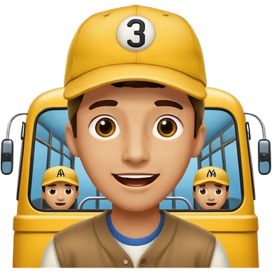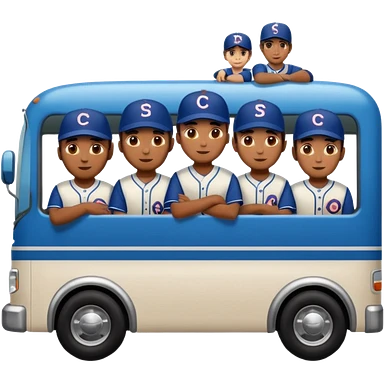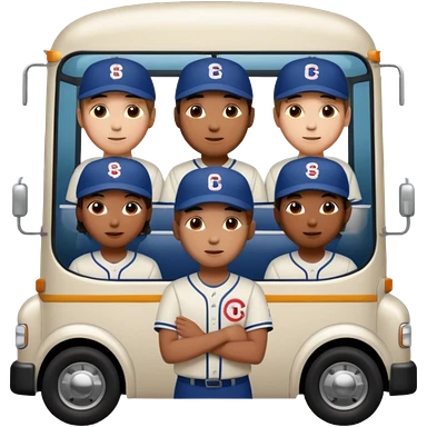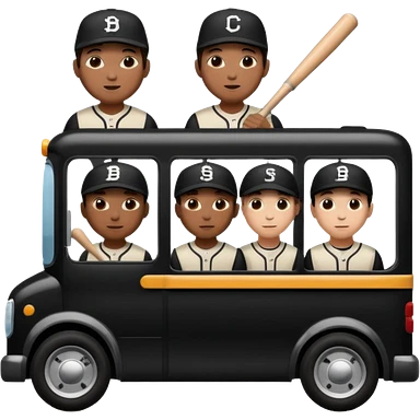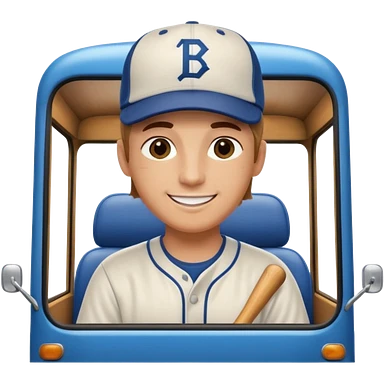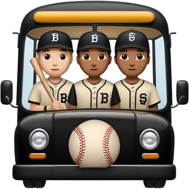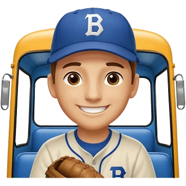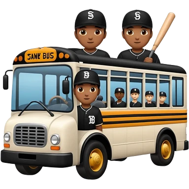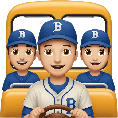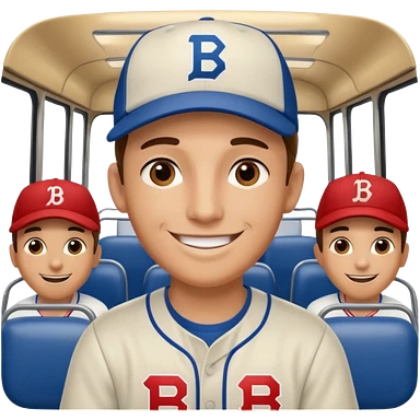 autobus de equipo llevando a egnte de basebal y un chofer con b en la gorra emoji