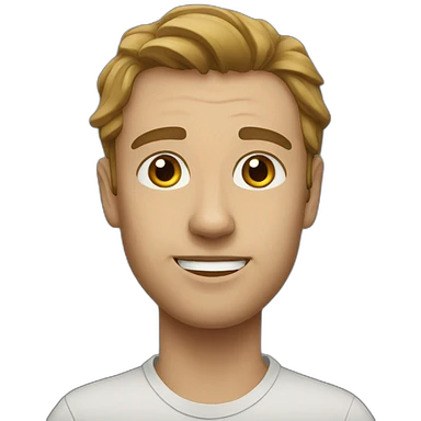Ashy blond hair, dark eyes, round silver glasses, round nose, dark goatie emoji