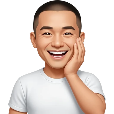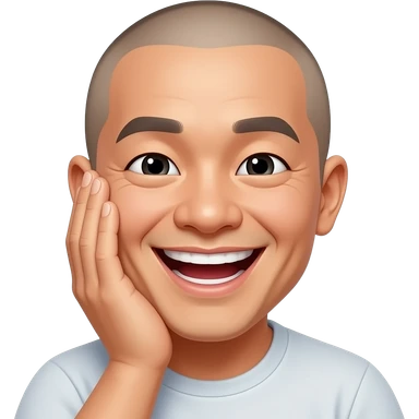 asian guy with shaved head with palm on face laughing with white t shirt on emoji