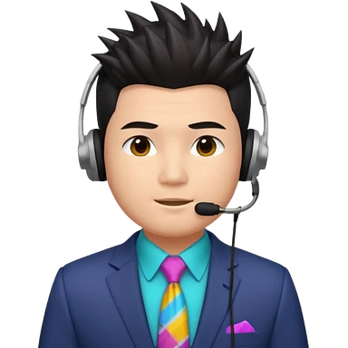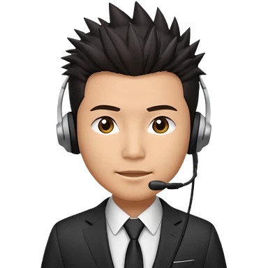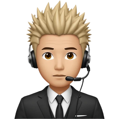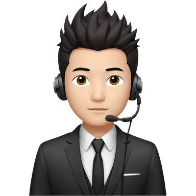 asian man headset suit face only spikey hair in front emoji