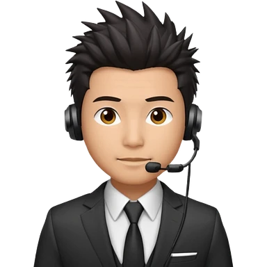 asian man headset suit face only spikey hair in front dark hair emoji