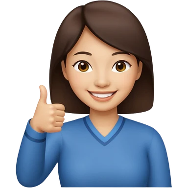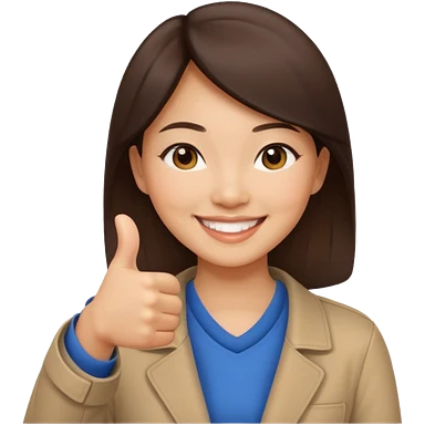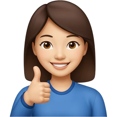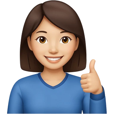 Asian woman, white button-up shirt, long permed wavy hair, emoji style, simple flat colors, transparent background. emoji