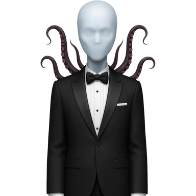 slenderman, tall figure, completely pale, white skin, tuxedo, tentacles coming out of back, no face, featureless emoji
