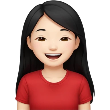 Cute asian girl with long hair and red t shirt who is laughing with eyes closed emoji