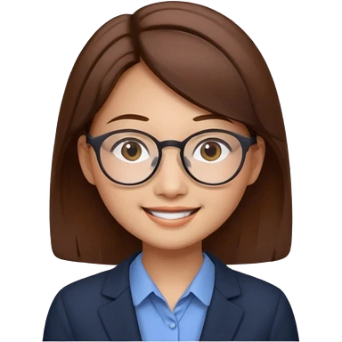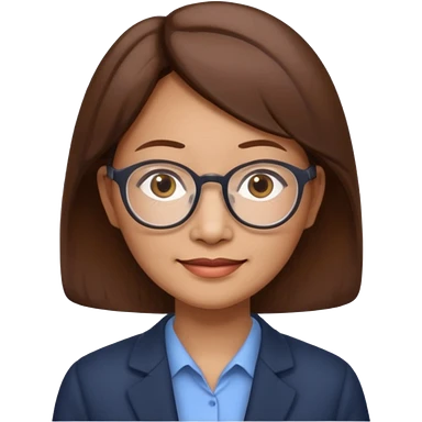 asian female accountant with eyeglasses, round face, brown hair, no tie, 63 years old emoji | AI Emoji Generator